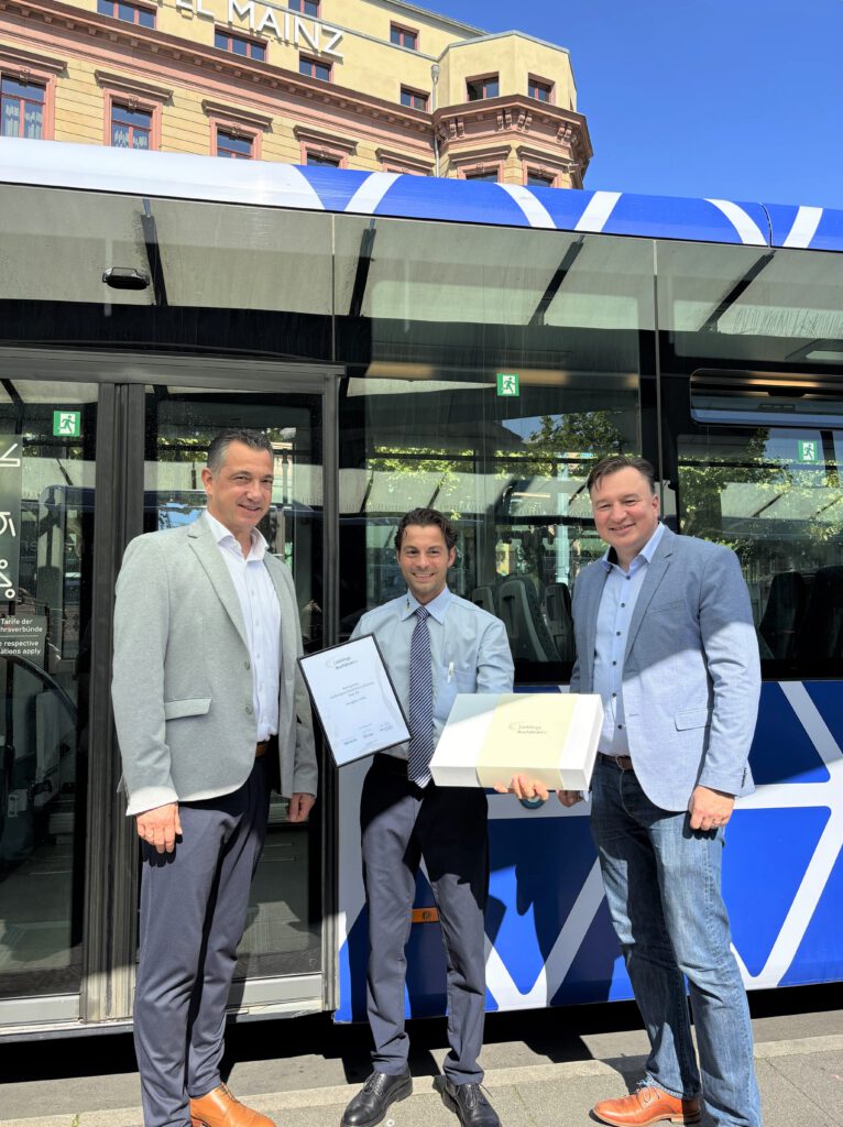 Busfahrer Angelo Meli von der Kommunalverkehr Rhein-Nahe (KRN) wurde im Rahmen der deutschlandweiten Aktion „LieblingsbusfahrerIn 2025“ unter die TOP 30 gewählt. KRN-Geschäftsführer Uwe Hiltmann und KRN-Aufsichtsratsvorsitzender Emanuel Letz, Oberbürgermeister der Stadt Bad Kreuznach, überreichten die Auszeichnungen persönlich an den verdienten Busfahrer. Die offizielle Übergabe fand am Mainzer Hauptbahnhof am Bussteig O statt – genau dort, wo die Linie 630 abfährt, die Angelo Meli bedient.