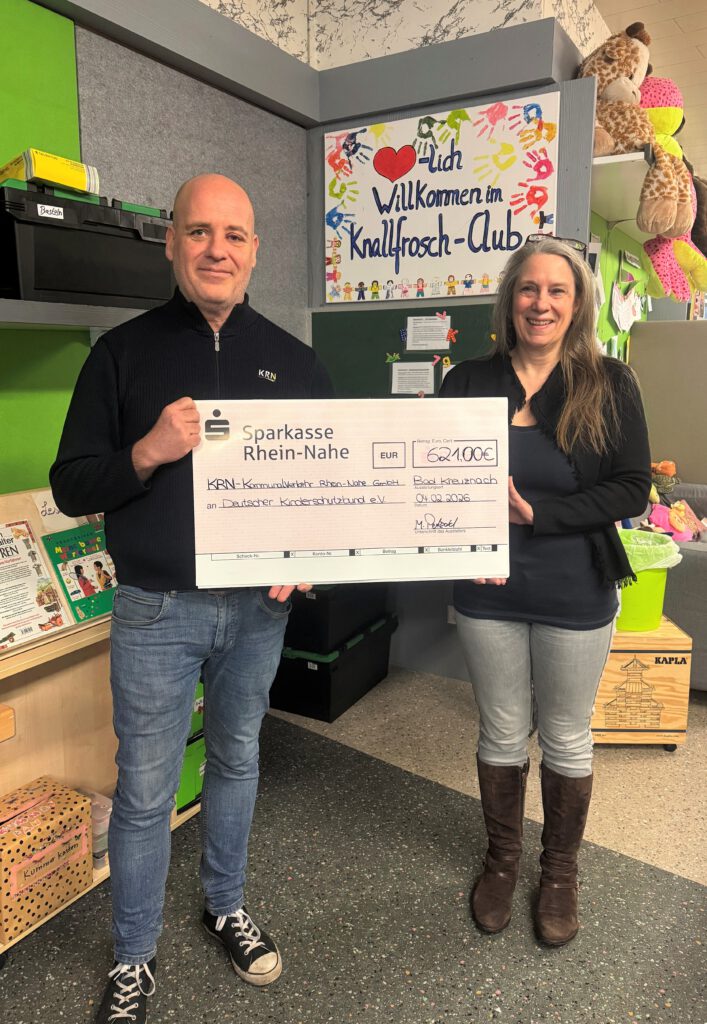 Dieser Beitrag wurde jetzt von KRN-Betriebsratsmitglied Marco Petzold an Andrea Friesenhan vom Kinderschutzbund Bad Kreuznach übergeben. „Die Spende zeigt das soziale Engagement unserer Mitarbeiter:innen. Wir freuen uns, damit die wertvolle Arbeit des Kinderschutzbundes unterstützen zu können“, sagt Marco Petzold.
